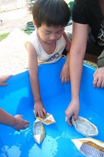 Enjoying the water. He wasn't afraid of the splashing sound from the "Big" bucket unlike Nicholas, who will run away whenever he hears the "ding ding" sound getting faster, which meant it's going to topple over soon.